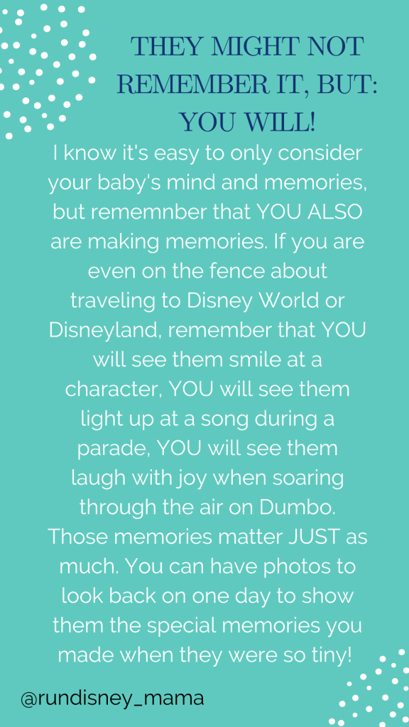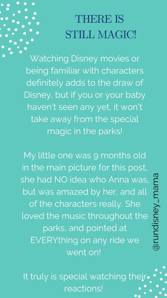 If you have any interest in getting your baby to Disney World or Disneyland, but still have some hesitations and reservations, reach out! I’d love to talk through any of those with you. I currently have three littles of my own, a 4 year old, a 3 year old, and a 1.5 year old, and each of them has been to Disney as a baby, and each of them has liked different things about it! My memories with them there are unforgetable!