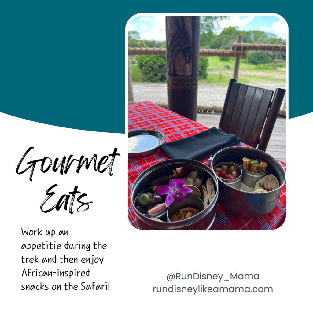 From the crocodile course you move on to a safari vehicle that takes you through part of the safari as well as to a little spot actually on the safari for light refreshments! The stop was beautiful and the food was all prepared in Animal Kingdom, but were items you can’t find on property otherwise. If you have allergies, they will also cater to those and prepare special snacks for your needs!