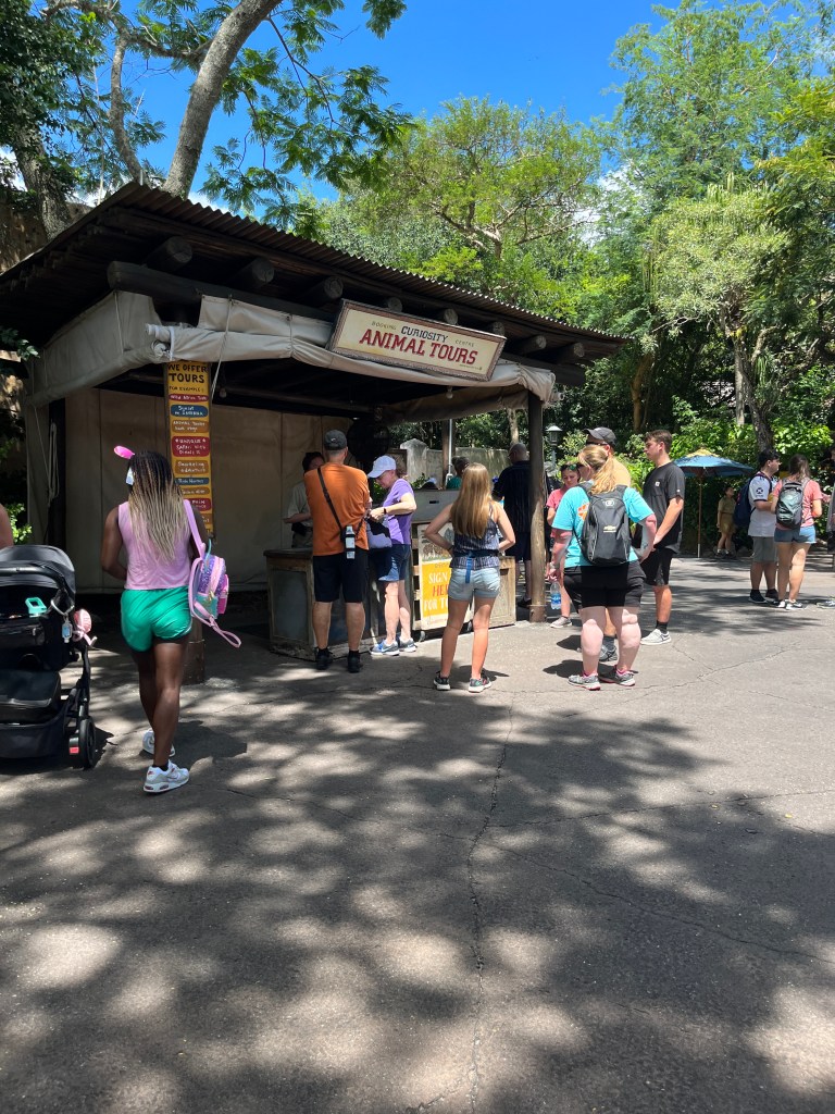 When it’s time for your tour, you’ll head over to Africa, to the Curiosity Animal Tours Booth where you’ll check-in and sign any waivers they need before your trek begins. They do mention you should not be pregnant during this tour and should be able to stand for long amounts of time. You will be walking and climbing quite a bit, and there is little to no seating available the whole three hours until you take a break for light refreshments, and finish your tour with part of a ride on the Safari.