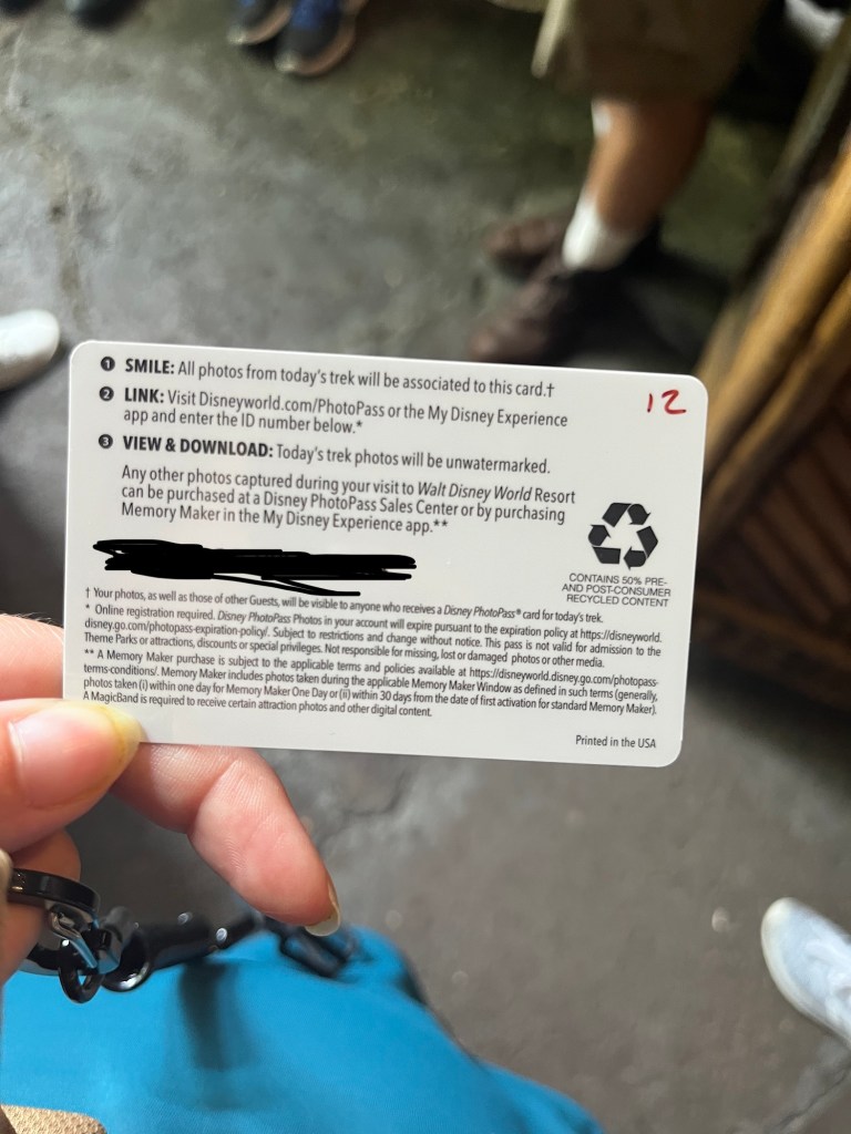 When your tour is complete, they have your return to the Curiosity Animal Tours stand, where the lockers are. They’ll help you remove all of your equipment and give you a moment to collect anything you left in the locker provided to you. You do get to keep the water bottle, and they’ll also pass out photo cards with a code to link to your Disney Photo Pass/ Memory Maker on your app! (This will give you access to any of the photos the Cast Members took during your tour!)